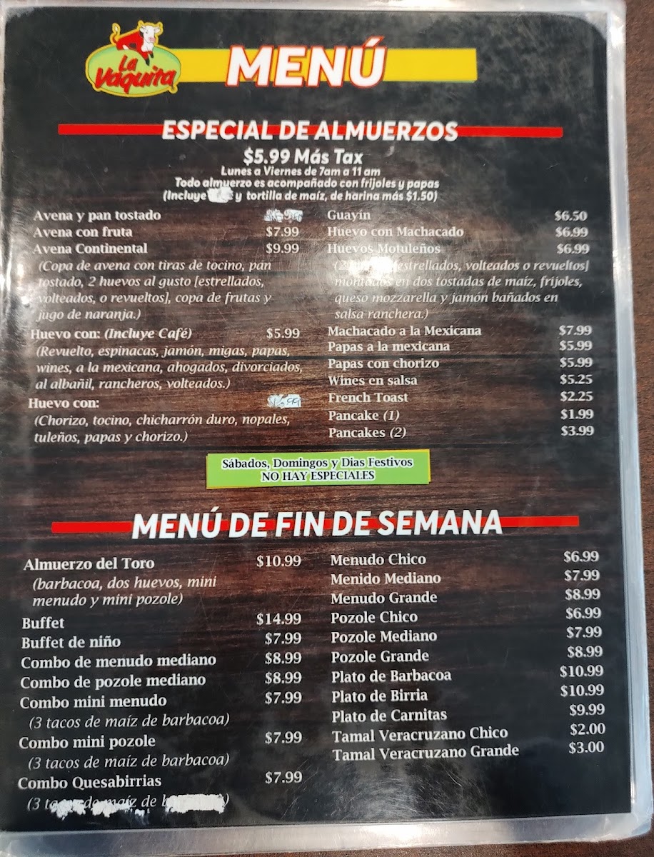 La Vaquita Bakery- Restaurant Menu